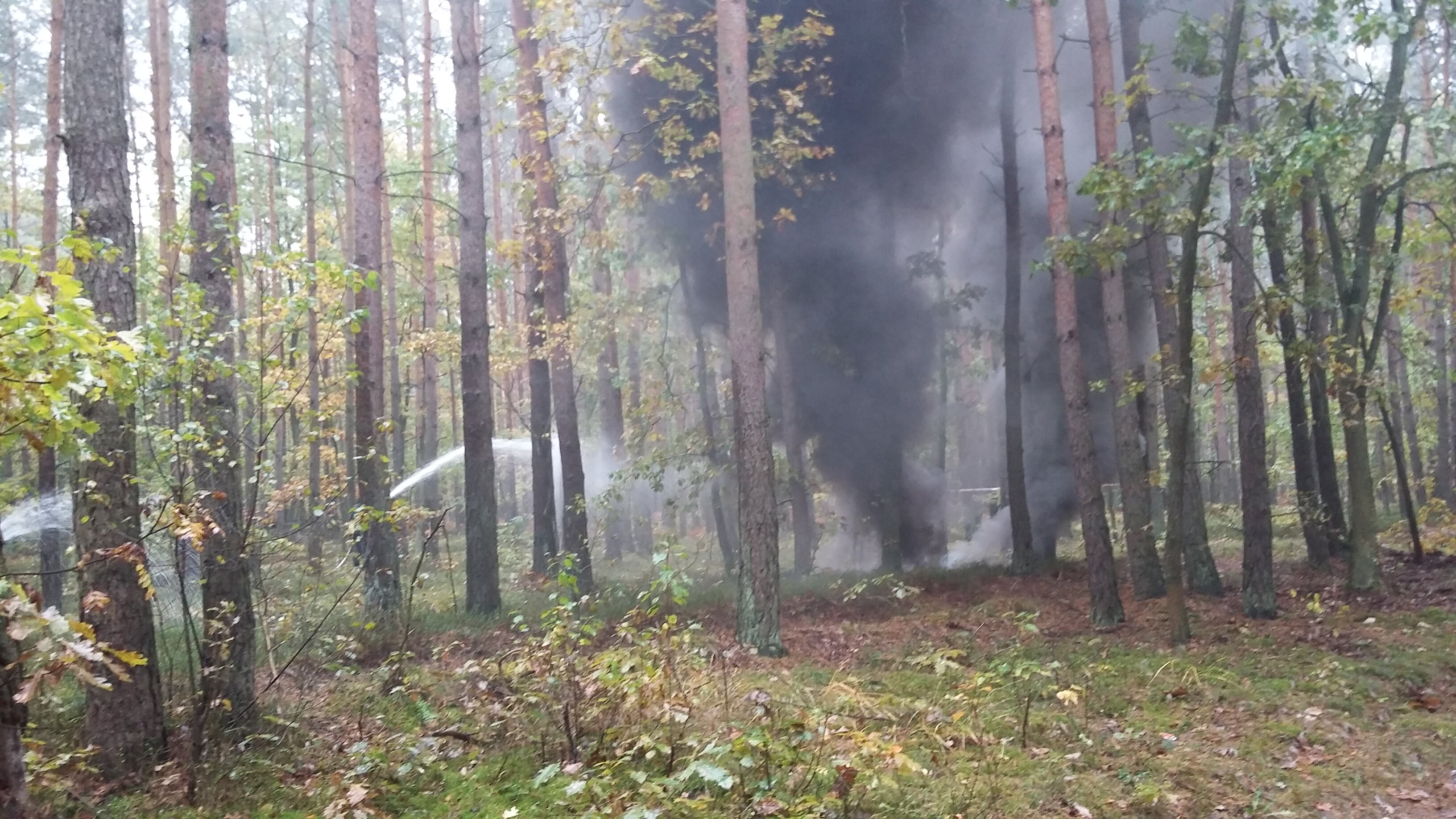 Po dojeździe kolejnych zastępów realizowane jest podawanie 9 prądów wody na palący się las (7 z nich ma zasilanie ze składanego zbiornika o pojemności 10000 litrów). Dowożenie wody do zbiornika realizowane jest przez 4 samochody GCBA o pojemności 5000 litrów każdy. Źródło poboru wody ma miejsce przy Jeziorze Czyste (ok. 2,6km w obie strony od zbiornika).